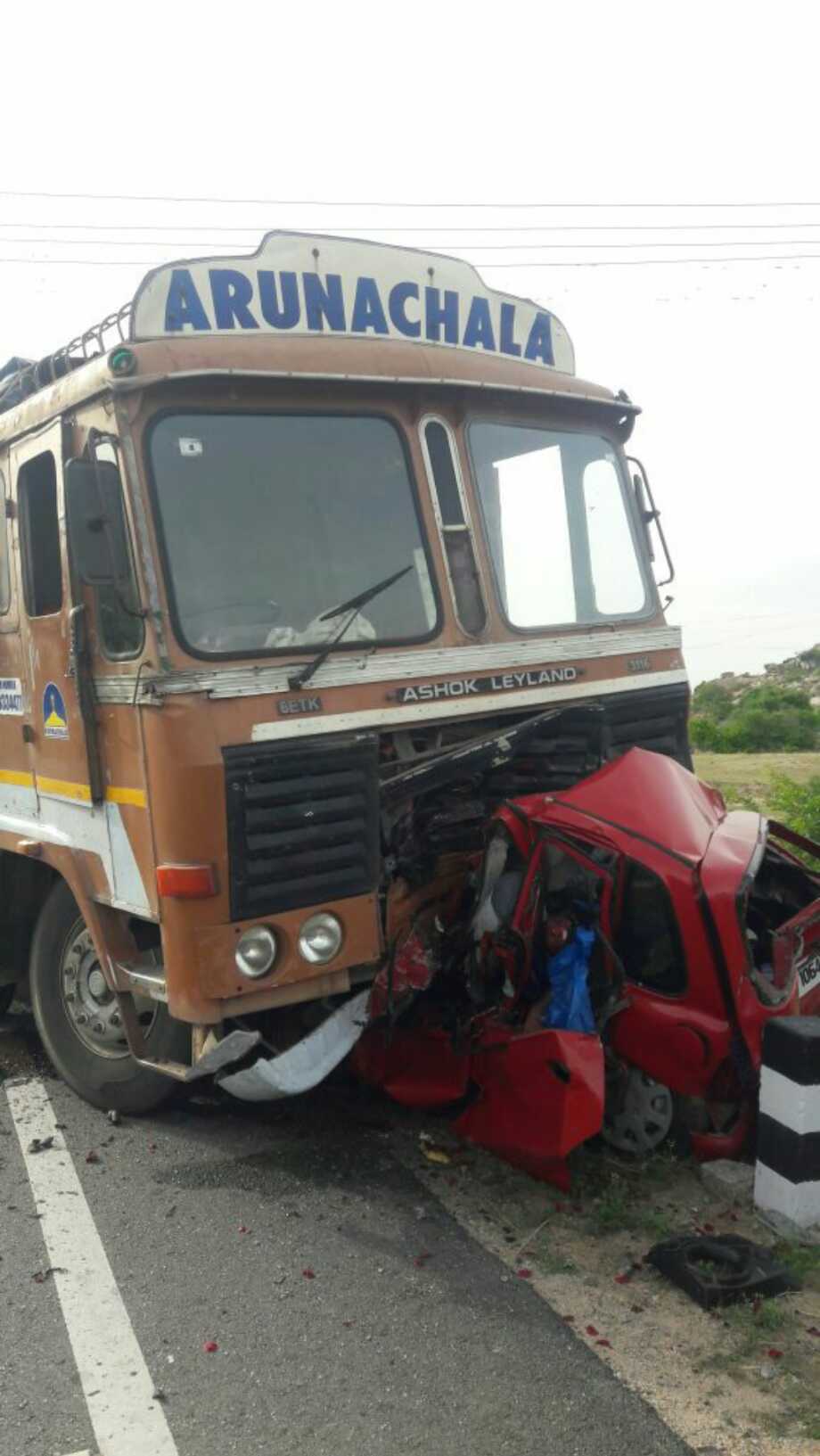 ಬೆಂಗಳೂರಿನ ಬೈಯಪ್ಪನಹಳ್ಳಿಯಿಂದ ಪಾವಗಡದಲ್ಲಿದ್ದ ನಿಶ್ಚಿತಾರ್ಥ ಕಾರ್ಯಕ್ರಮಕ್ಕೆ ಹೋಗುತ್ತಿದ್ದ ವೇಳೆ ಮಧುಗಿರಿ ಬಳಿ ಕಾರಿಗೆ ಲಾರಿ ಡಿಕ್ಕಿ ಹೊಡೆದಿದ್ದು, ಕಾರಿನಲ್ಲಿದ್ದ ಐದು ಜನರು ದುರ್ಮರಣ ಹೊಂದಿದ್ದಾರೆ.