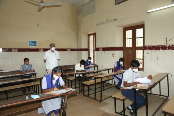 ⚫ ಮಕ್ಕಳು ಸರತಿ ಸಾಲಿನಲ್ಲಿ ಸಾಮಾಜಿಕ ಅಂತರದಲ್ಲಿ ಪರೀಕ್ಷಾ ಕೇಂದ್ರಗಳಿಗೆ ಬಂದರು. ನೇರವಾಗಿ ಪರೀಕ್ಷಾ ಕೇಂದ್ರದ ಆರೋಗ್ಯ ತಪಾಸಣಾ ಘಟಕಕ್ಕೆ ಭೇಟಿ ನೀಡಿ ಅಲ್ಲಿ ಜ್ವರ ಪರೀಕ್ಷೆಯ ನಂತರ ಪರೀಕ್ಷಾ ಕೇಂದ್ರದ ಮುಂದೆ ಹಾಕಲಾಗಿದ್ದ ಫಲಕದಲ್ಲಿ ತಮ್ಮ ಕೊಠಡಿ ಸಂಖ್ಯೆಯನ್ನು ನೋಡಿಕೊಂಡು ಪರೀಕ್ಷಾ ಕೊಠಡಿಗಳಿಗೆ ತೆರಳುವ ವ್ಯವಸ್ಥೆ ಮಾಡಲಾಗಿತ್ತು.