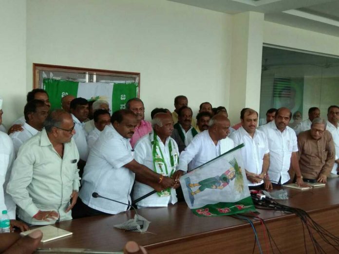 ಬೆಂಗಳೂರು: ಜೆಡಿಎಸ್ ನೂತನ ರಾಜ್ಯಾಧ್ಯಕ್ಷರಾಗಿ ಎಚ್.ವಿಶ್ವನಾಥ್ ಆಯ್ಕೆಯಾಗಿದ್ದು, ಪಕ್ಷದ ಬಾವುಟ ನೀಡುವ ಮೂಲಕ ಜೆಡಿಎಸ್ ರಾಜ್ಯಾಧ್ಯಕ್ಷರಾಗಿದ್ದ ,ಮುಖ್ಯಮಂತ್ರಿ ಎಚ್.ಡಿ ಕುಮಾರಸ್ವಾಮಿ ಅಧಿಕಾರ ಹಸ್ತಾಂತರಿಸಿದರು.
