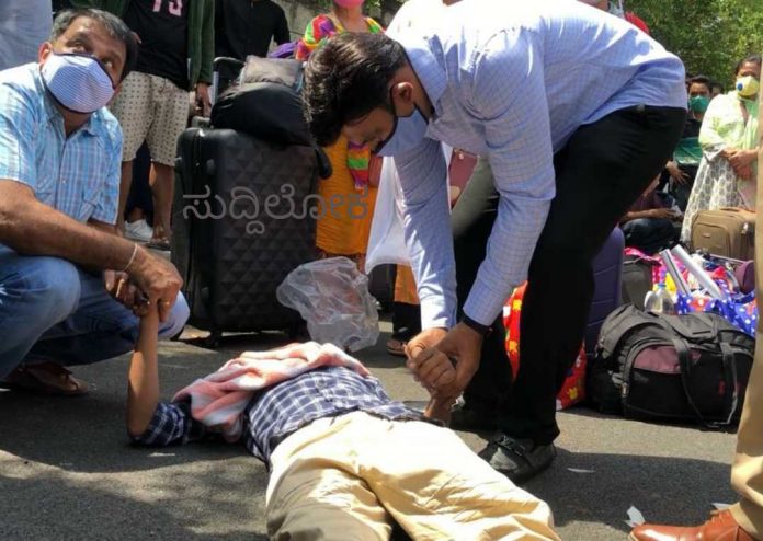 ಈ ಸಂದರ್ಭದಲ್ಲಿ ಒಡಿಶಾ ಮೂಲದ ಎರ್ಷಾದ್ ಎಂಬಾತ ದಿಢೀರ್ ಎಂದು ಕುಸಿದು ಬಿದ್ದು ಒದ್ದಾಡತೊಡಗಿದ. ನೂರಾರು ಮಂದಿ ಅವರ ರಾಜ್ಯದವರೇ ಇದ್ದರೂ ಯಾರೊಬ್ಬರು ನೆರವಿಗೆ ಧಾವಿಸಲಿಲ್ಲ. ಅಲ್ಲಿಯೇ ಇದ್ದ ಸಚಿವ ಸುಧಾಕರ್ ಅವರು ತಕ್ಷಣ ಆತನಲ್ಲಿಗೆ ತೆರಳಿ ಆತನನ್ನು ಪರೀಕ್ಷಿಸಿ, ಪ್ರಾಥಮಿಕ ಚಿಕಿತ್ಸೆ ನೀಡಿದರು. ತಕ್ಷಣ ಪೊಲೀಸ್ ಇಲಾಖೆ ವಾಹನದಲ್ಲಿ ಆತನನ್ನು ವಿಕ್ಟೋರಿಯಾ ಆಸ್ಪತ್ರೆಗೆ ಕಳುಹಿಸಿಕೊಟ್ಟರು.