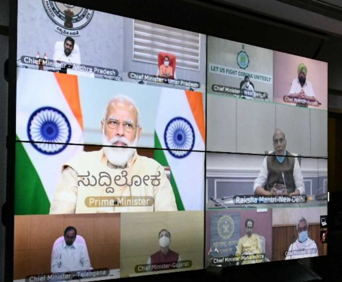 ಬೆಂಗಳೂರು, ಆಗಸ್ಟ್ 11: ಕೋವಿಡ್ 19 ನಿರ್ವಹಣೆ ಕುರಿತು ಎಲ್ಲ ರಾಜ್ಯಗಳ ಮುಖ್ಯಮಂತ್ರಿಗಳೊಂದಿಗೆ ಪ್ರಧಾನಿ ನರೇಂದ್ರ ಮೋದಿ ಮತ್ತು ರಕ್ಷಣಾ ಸಚಿವ ರಾಜನಾಥ್ ಸಿಂಗ್ ಅವರು ವೀಡಿಯೋ ಕಾನ್ಫರೆನ್ಸ್ ನಡೆಸಿದರು.