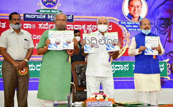 ಶುಕ್ರವಾರ ಸಾರ್ವಜನಿಕ ಶಿಕ್ಷಣ ಇಲಾಖೆ ಆಶ್ರಯದಲ್ಲಿ ವಿಧಾನಸೌಧದ ಬ್ಯಾಂಕ್ವೆಟ್ ಹಾಲ್ ನಲ್ಲಿ ನಡೆದ ರಾಜ್ಯ ಮಟ್ಟದ ಶಿಕ್ಷಕರ ದಿನಾಚರಣೆ-2020 ಮತ್ತು ರಾಜ್ಯ ಹಾಗೂ ರಾಷ್ಟ್ರ ಪ್ರಶಸ್ತಿ ಪಡೆದ ಶಿಕ್ಷಕರ ಸನ್ಮಾನ ಸಮಾರಂಭ ಉದ್ಘಾಟಿಸಿ ಮಾತನಾಡಿದ ಅವರು, ಸಮಾಜದ ಅಭಿವೃದ್ಧಿ ಶಿಕ್ಷಣದ ಜೊತೆಗೆ ಬೆಸೆದುಕೊಂಡಿದೆ. ನಮ್ಮ ಸಮಾಜದಲ್ಲಿ ತಂದೆ ಹಾಗೂ ತಾಯಿಯ ನಂತರದ ಸ್ಥಾನ ಗುರುವಿಗೇ ಮೀಸಲು. ಒಬ್ಬ ವ್ಯಕ್ತಿಯ ಸರ್ವತೋಮುಖ ಅಭಿವೃದ್ಧಿಗೆ ಶಿಕ್ಷಕರ ಪಾತ್ರ ಮುಖ್ಯವಾಗಿದ್ದು, ಅವರು ಮೌಲ್ಯಗಳನ್ನು ಅಳವಡಿಸಿಕೊಂಡು ಮಕ್ಕಳಲ್ಲಿ ಮೂಡಿಸಬೇಕು ಎಂದರು.