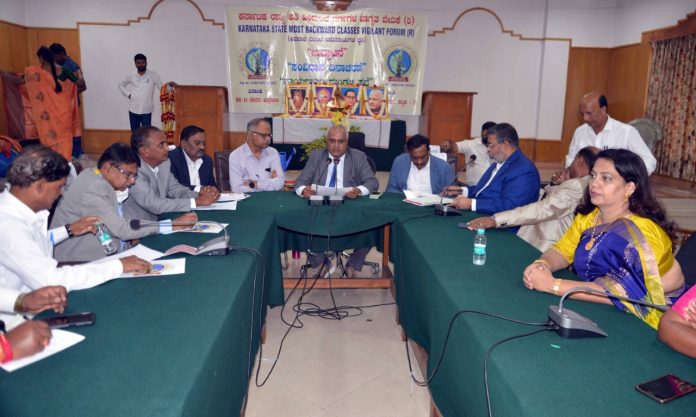 ಇಂದು ಶಾಸಕರ ಭವನದ ಸಭಾಂಗಣದಲ್ಲಿ ನಡೆದಂತಹ ಅತಿ ಹಿಂದುಳಿದ ವರ್ಗಗಳ ಜಾಗೃತಿ ವೇದಿಕೆಯ ಕಾರ್ಯಕಾರಣಿ ಸಭೆಯ ನಂತರ ಮಾಧ್ಯಮ ಪ್ರತಿನಿಧಿಗಳಿಗೆ ಮಾಹಿತಿ ನೀಡಿದರು. ಪ್ರಬಲ ಜಾತಿಗಳು 2ಎ ಪ್ರವರ್ಗದಲ್ಲಿರುವ ಜಾತಿಗಳ ಮೀಸಲಾತಿಯನ್ನು ಕಬಳಿಸುವಂತಹ ಕೃತ್ಯಕ್ಕೆ ಮುಂದಾಗಿವೆ. ರಾಜಕೀಯವಾಗಿ, ಸಾಮಾಜಿಕವಾಗಿ ಒತ್ತಡ ಹೇರಲಾಗುತ್ತಿದೆ. ಇದರ ವಿರುದ್ದ ಕಳೆದ ಮಾರ್ಚ್ ತಿಂಗಳಿನಿಂದ ಬೆಂಗಳೂರು ನಗರ, ಮುಖ್ಯಮಂತ್ರಿಗಳು ಹಾಗೂ ಹಿಂದುಳಿದ ಆಯೋಗದ ಅಧ್ಯಕ್ಷರಿಗೆ ಹಲವಾರು ಬಾರಿ ಮನವಿಯನ್ನು ಸಲ್ಲಸಿದ್ದೇವೆ. ಆದರೆ, ಇದುವರೆಗೂ ನಮಗೆ ಸಕಾರಾತ್ಮಕವಾದಂತಹ ಪ್ರತಿಕ್ರಿಯೆ ಸಿಕ್ಕಿಲ್ಲ ಎಂದರು.