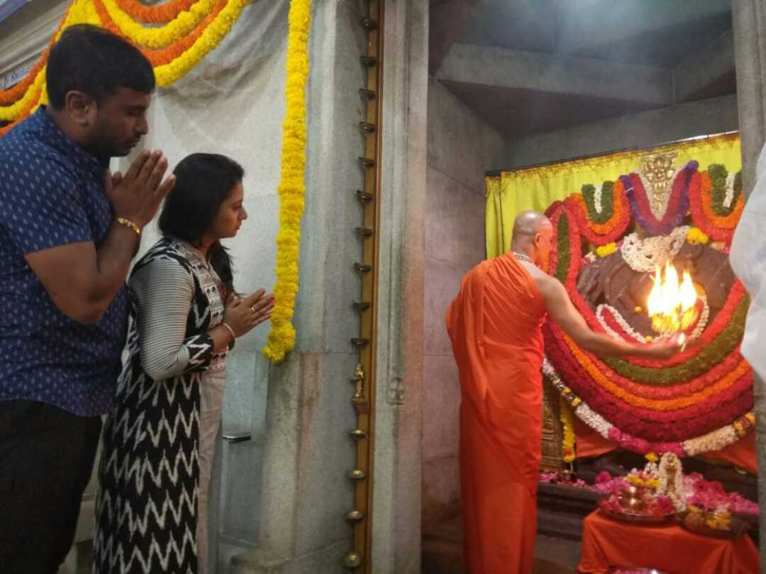 ಚಿಕ್ಕಬಳ್ಳಾಪುರ: ಸ್ಯಾಂಡಲ್ ವುಡ್ ನಟಿ ಅಮೂಲ್ಯ ಹಾಗೂ ಪತಿ ಜಗದೀಶ್ ಗೌಡ ಚಿಕ್ಕಬಳ್ಳಾಪುರ ಬಳಿಯ ಶ್ರೀ ವಿರಾಂಜನೇಯನ ದೇಗುಲಕ್ಕೆ ಭೇಟಿ ನೀಡಿ ದೇವರ ದರ್ಶನ ಪಡೆದರು.