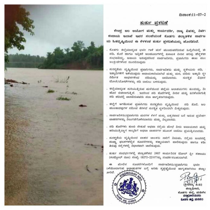 ನದಿ ತೊರೆಗಳಿಗೆ ಇಳಿದು ಈಜುವುದು,ಸ್ನಾನ ಮಾಡುವುದು,ಜಲಪಾತಗಳ ಸಮೀಪ ಹೋಗುವುದನ್ನು ಮಾಡದಂತೆ ಪ್ರವಾಸಿಗರಿಗೆ ಮುನ್ನೆಚ್ಚರಿಕೆ ನೀಡಲಾಗಿದ್ದು,ಸೇತುವೆಗಳ ಮೇಲೆ ನೀರು ಹರಿಯುತ್ತಿದ್ದಾಗ ದಾಟುವ ಪ್ರಯತ್ನ ನಡೆಸಬಾರದು,ತೊರೆಗಳ ಸಮೀಪ,ಬೃಹತ್ ಬಂಡೆ,ಮರಗಳ ಕೆಳಗೆ ವಾಹನ ನಿಲ್ಲಿಸಬಾರದು ಎನ್ನುವ ಸಲಹೆ ನೀಡಿದೆ.ನದಿ ತೊರೆಗಳ ತಗ್ಗು ಪ್ರದೇಶಗಳಲ್ಲಿ ವಾಸಿಸುವವರು ಸದಾ ಜಾಗೃತವಾಗಿರಬೇಕು,ಯಾವುದೇ ಅಪಾಯವಾದಲ್ಲಿ ಜಿಲ್ಲೆಯ ತುರ್ತು ಸಂಖ್ಯೆಗೆ ಕರೆ ಮಾಡಿ ಎಂದು ಸೂಚಿಸಿದೆ.