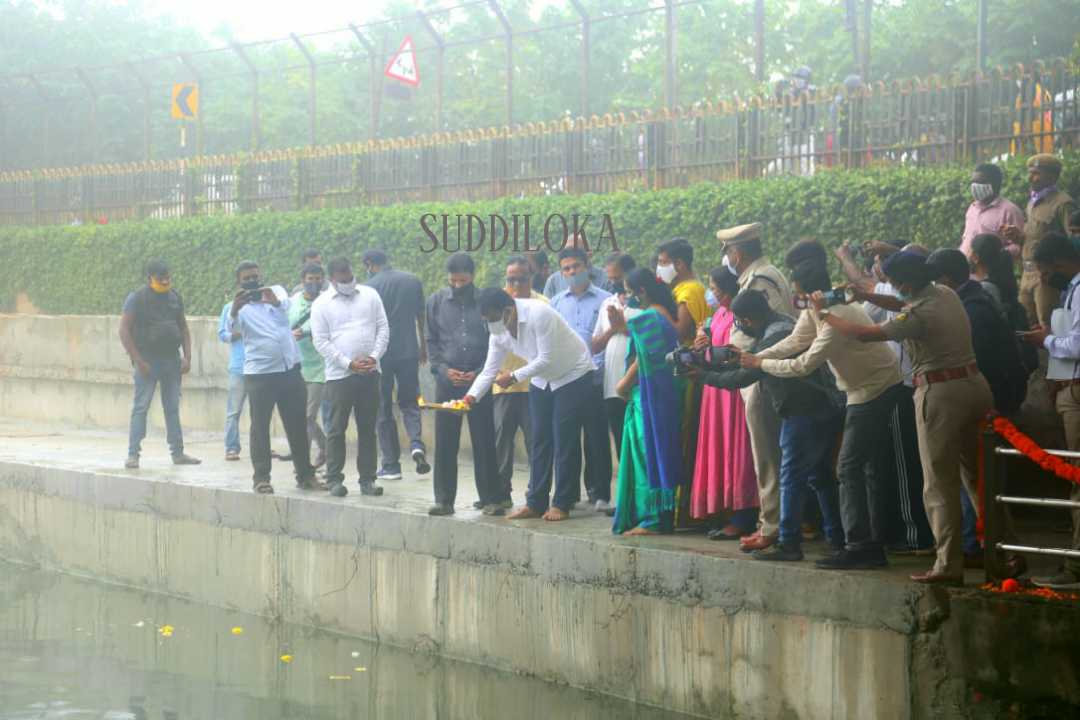 He worshipped the water goddess ‘Gange’ exactly at 9.30 a.m. and wished the tank which is dearer to the people of Malleshwaram would retain its green and beauty forever.