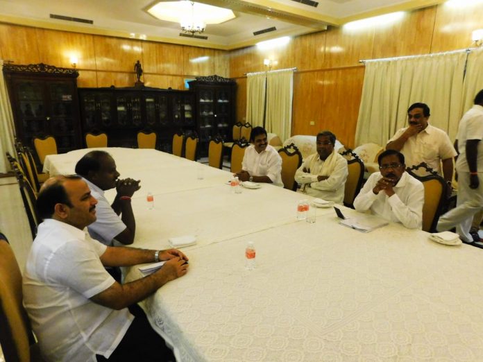 ಮೈತ್ರಿ ಸರ್ಕಾರದ ಮೊದಲ ಸಮನ್ವಯ ಸಮಿತಿ ಇಂದು ಕುಮಾರಕೃಪ ಅತಿಥಿ ಗೃಹದಲ್ಲಿ ನಡೆಯಿತು. ಸಮನ್ವಯ ಸಮಿತಿಯ ಅಧ್ಯಕ್ಷ ಸಿದ್ದರಾಮಯ್ಯ ನೇತ್ರತ್ವದಲ್ಲಿ ನಡೆದ ಸಭೆಯಲ್ಲಿ ಮುಖ್ಯಮಂತ್ರಿ ಎಚ್.ಡಿ. ಕುಮಾರಸ್ವಾಮಿ, ಜೆಡಿಎಸ್ ರಾಷ್ಟ್ರೀಯ ಪ್ರಧಾನ ಕಾರ್ಯದರ್ಶಿ ಡ್ಯಾನಿಶ್ ಅಲಿ, ಉಪ ಮುಖ್ಯಮಂತ್ರಿ ಜಿ. ಪರಮೇಶ್ವರ್, ರಾಜ್ಯ ಕಾಂಗ್ರೆಸ್ ಉಸ್ತುವಾರಿ ಕೆ.ಸಿ. ವೇಣುಗೋಪಾಲ್ ಮುಂತಾದವರು ಭಾಗವಹಿಸಿದ್ದರು.